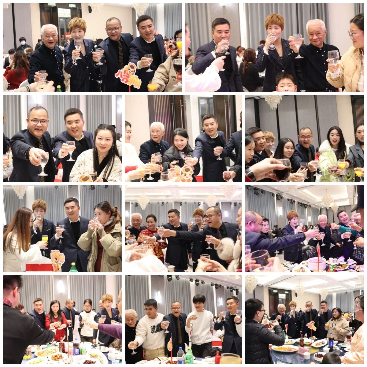 致辞结束后,詹群瑛董事长、林国炳总经理、王丁杰院长、陶培丽院长再次登台,与现场所有家人、嘉宾共同举杯,共祝奉爱医院明天更美好,随后开始一桌桌逐一敬酒,晚宴的欢乐氛围就此推向第一个高潮。