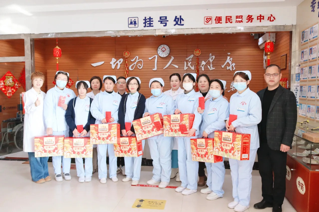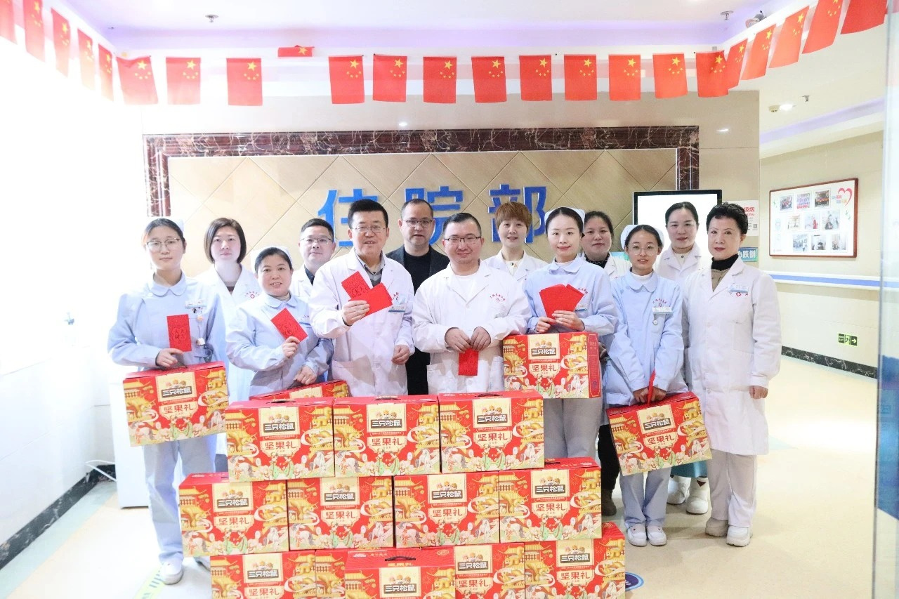 慰问现场,暖意融融。林总、陶院长等院领导一行,亲手将承载着医院关爱与新春期许的红包和礼包,一一送到每一位员工手中,一句句亲切的问候、一声声暖心的祝福,瞬间驱散了冬日的寒意,也让每一位员工的心中都充满了暖意。
